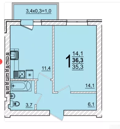 Продается однокомнатная новостройка, 36.3 кв.м., 4/5 эт