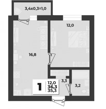 | Площадь, кв.м. | 36.3 |