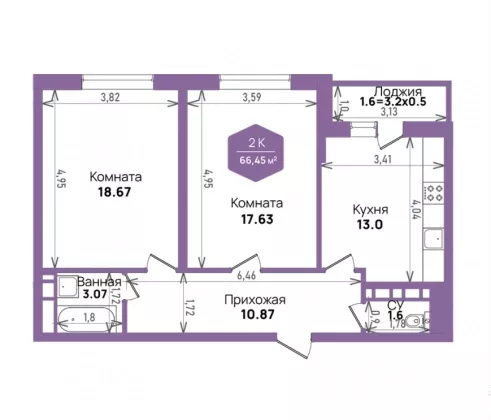 Продается 2-х комн. новостройка, 66.45 кв.м., 10/24 эт
