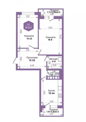 Продается 2-х комн. новостройка, 69.2 кв.м., 9/24 эт