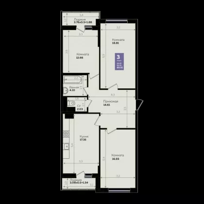 Продается 3-х комн. новостройка, 86.4 кв.м., 17/24 эт
