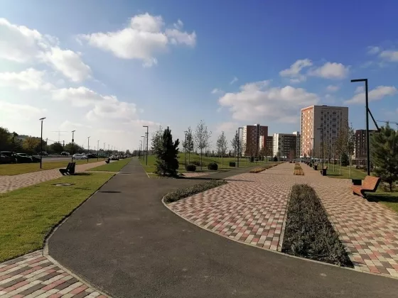 На территории комплекса три детских сада, школа, поликлиника, фонтан и парк 6 га. Тематические детские и технологические воркаут площадки, благоустроенная и зеленая территория. Гостевая парковка, наземная и подземная автостоянка, многоуровневые крытые и наземные парковки.