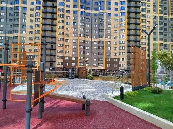 Во дворе многофункциональные спортивные площадки с тренажерами и для занятия йогой, игровая площадка для детей разного возраста, также площадка для детей 3-7 лет, уединённые места для отдыха, велодорожка по всему периметру двора.