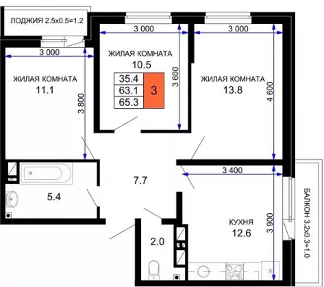 Продается 3-х комн. новостройка, 65.3 кв.м., 4/16 эт