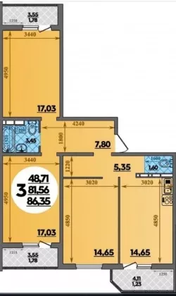Продается 3-х комн. новостройка, 86.35 кв.м., 12/16 эт