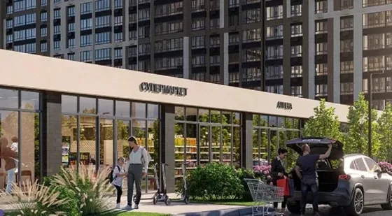 Есть стилобат, в котором будут располагаться парковочные места и коммерческие помещения