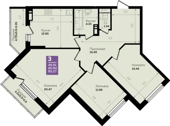Продается 3-х комн. новостройка, 85.27 кв.м., 14/24 эт