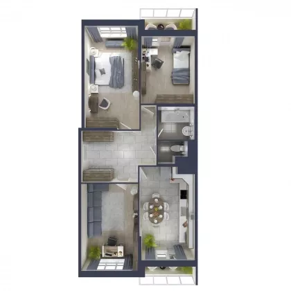 Трёхкомнатная квартира, просторные комнаты, большая кухня-гостиная, две лоджии, раздельный сан.узел, есть место под гардероб.