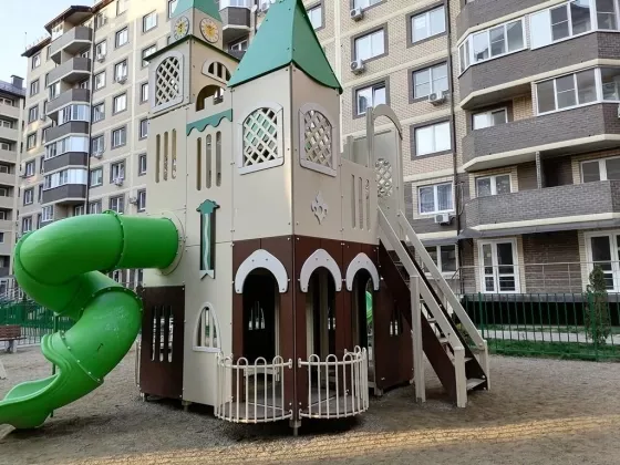 Шикарная придомовая территория, красочно оформлены детские и спортивные площадки , зоны отдыха для детей и взрослых. Открыты магазины и объекты бытового обслуживания, первые этажи дома отведены под коммерцию, поэтому у вас всё необходимое в доме есть. Везде уложена красивая тротуарная плитка, всё чисто и аккуратно. При въезде в жилищный комплекс арка с часами, а чуть правее зеленая аллея со скамейками для отдыха, очень красиво. Чистота и порядок!!!
