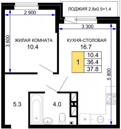 Продается однокомнатная новостройка, 37.8 кв.м., 14/16 эт