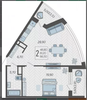 Продается 2-х комн. новостройка, 66.5 кв.м., 4/16 эт