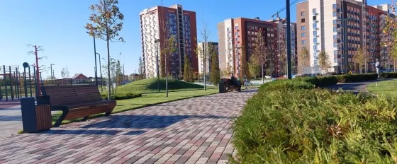 Однокомнатная квартира в новом самодостаточном микрорайоне. Дизайнерские входные группы, сквозной подъезд, скоростной лифт, ухоженная придомовая территория.