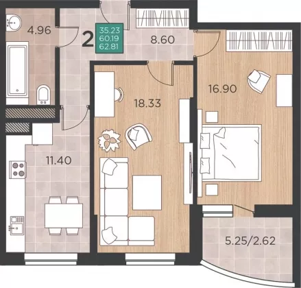 Продается 2-х комн. новостройка, 63 кв.м., 14/17 эт