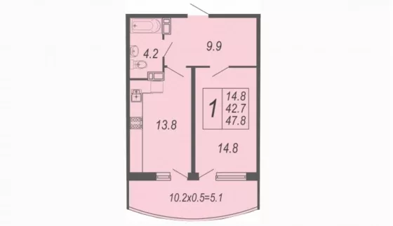 Продается однокомнатная новостройка, 48 кв.м., 17/17 эт
