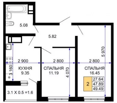 | Площадь, кв.м. | 49.49 |