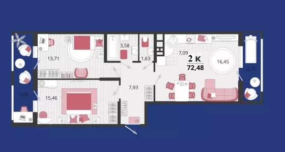 Продается 2-х комн. новостройка, 73 кв.м., 7/9 эт