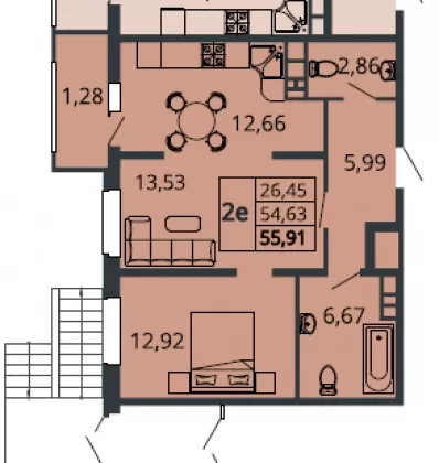 Продается 2-х комн. новостройка, 56 кв.м., 1/9 эт