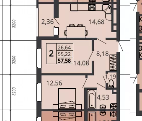 Продается 2-х комн. новостройка, 58 кв.м., 7/24 эт