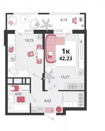Продается однокомнатная новостройка, 43 кв.м., 7/16 эт